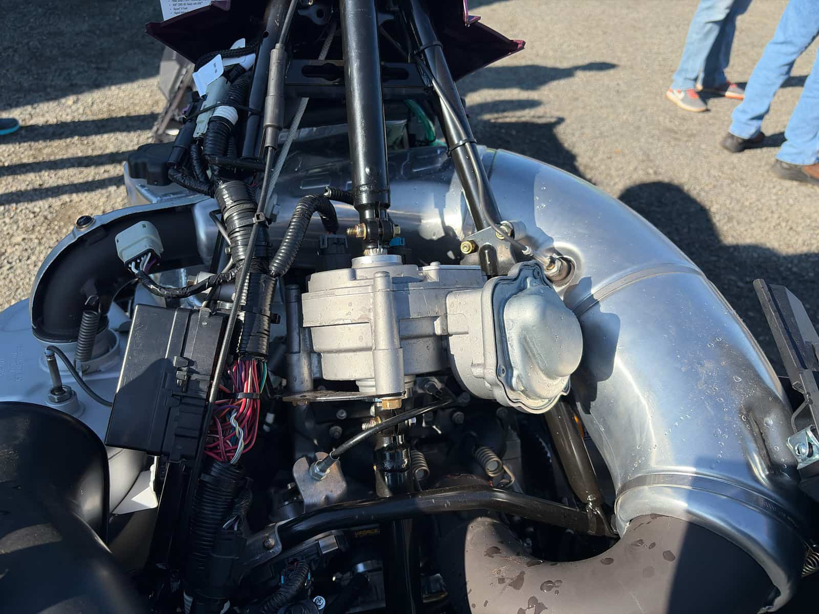 D’abord, elle repose sur le châssis Catalyst, qui en est désormais à sa troisième année de conception. Puis, elle utilise le moteur bicylindre en ligne couché (lay-down) de 600 cc, une exclusivité de ce fabricant.