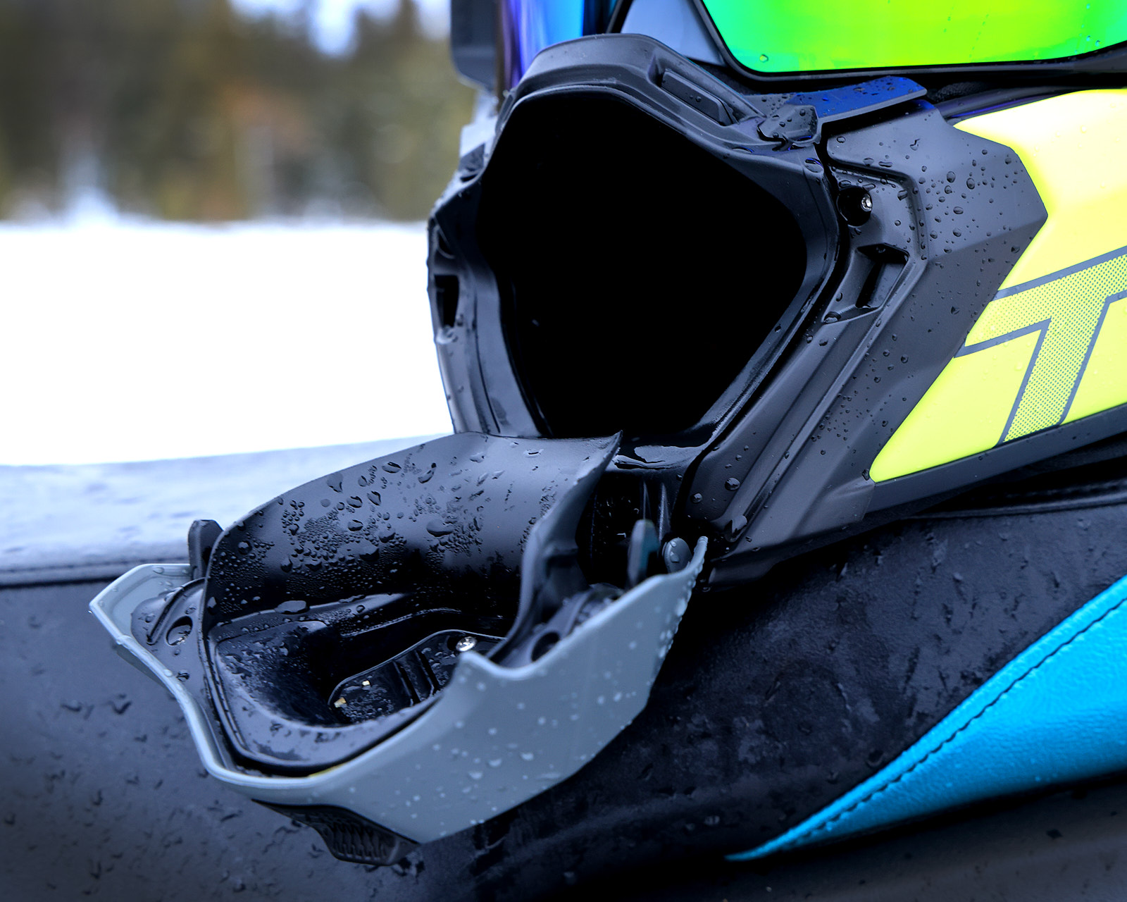 Le casque AMS regorge de fonctionnalités qui me sont nouvelles et que j’ai bien hâte de mettre à l’épreuve. J’espère que le système intégré de gestion de l’air (Air Management System—AMS) aidera à régler les problèmes agaçants d’humidité et de buée qui ont marqué ma vie de motoneigiste. J’envie depuis quelques saisons la muselière escamotable de CKX et j’espère qu’elle sera à la hauteur de l’image que je m’en fais.