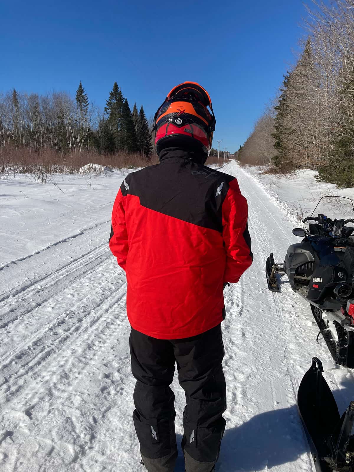 Ma première sortie, début février, a été une journée complète hors sentier sur 139 km de chemins forestiers. J’ai porté l’ensemble CKX complet. Au départ, il faisait -18 °C et environ -15 °C en après-midi. Malgré un peu de soleil, la journée est restée froide.