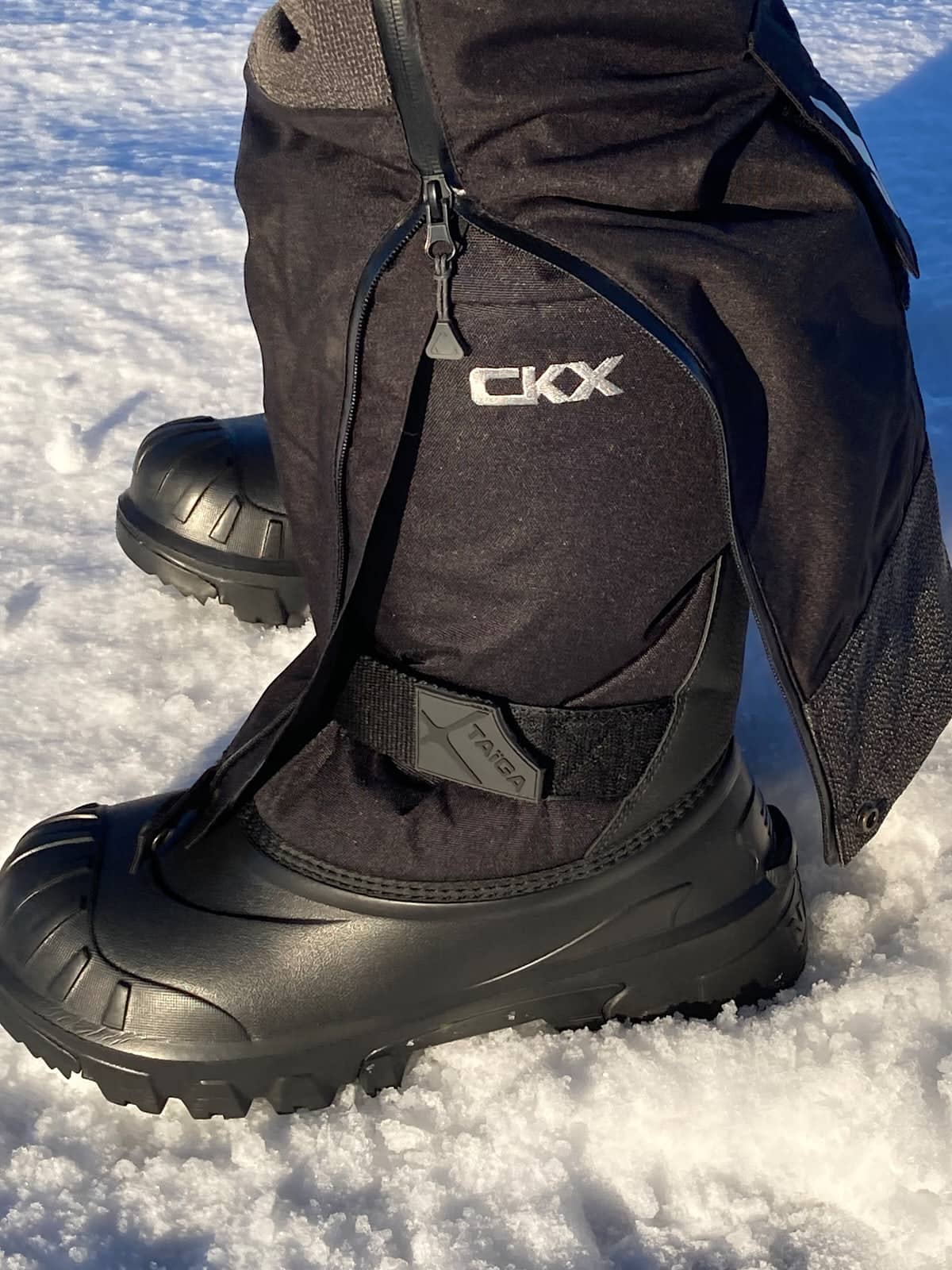 Pour mes pieds, j’ai choisi les bottes CKX Taiga EVO, taille 12. Là encore, j’ai fait ce choix volontairement : je veux évaluer leur performance thermique.