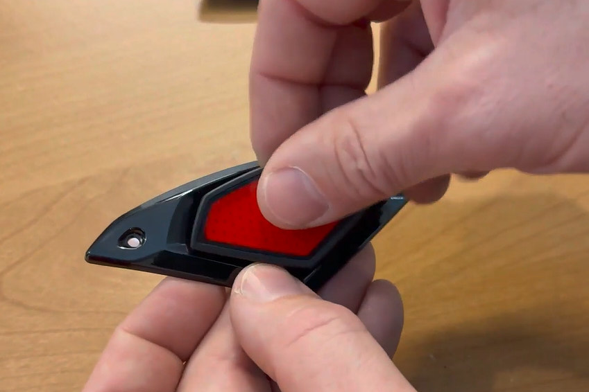 - Retirez délicatement le badge DOT et mettez les vis de côté, vous en aurez besoin plus tard.