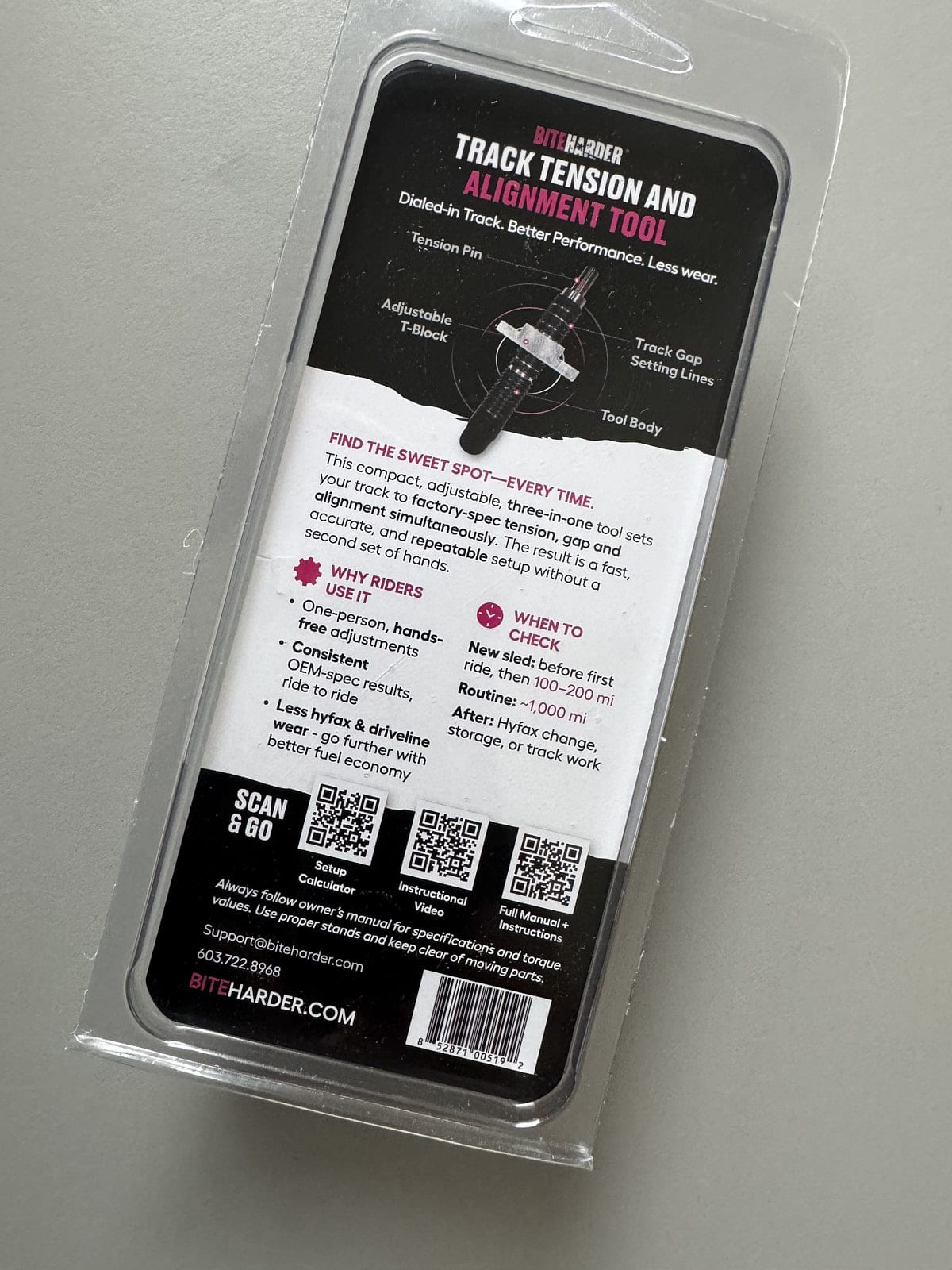 Pour 2026, BiteHarder ajoute un autre outil de commodité de grande qualité à sa gamme. Leur outil de tension et d’alignement de chenille permet de régler facilement et avec précision la tension et l’alignement de la chenille de votre motoneige, de façon constante et répétable.