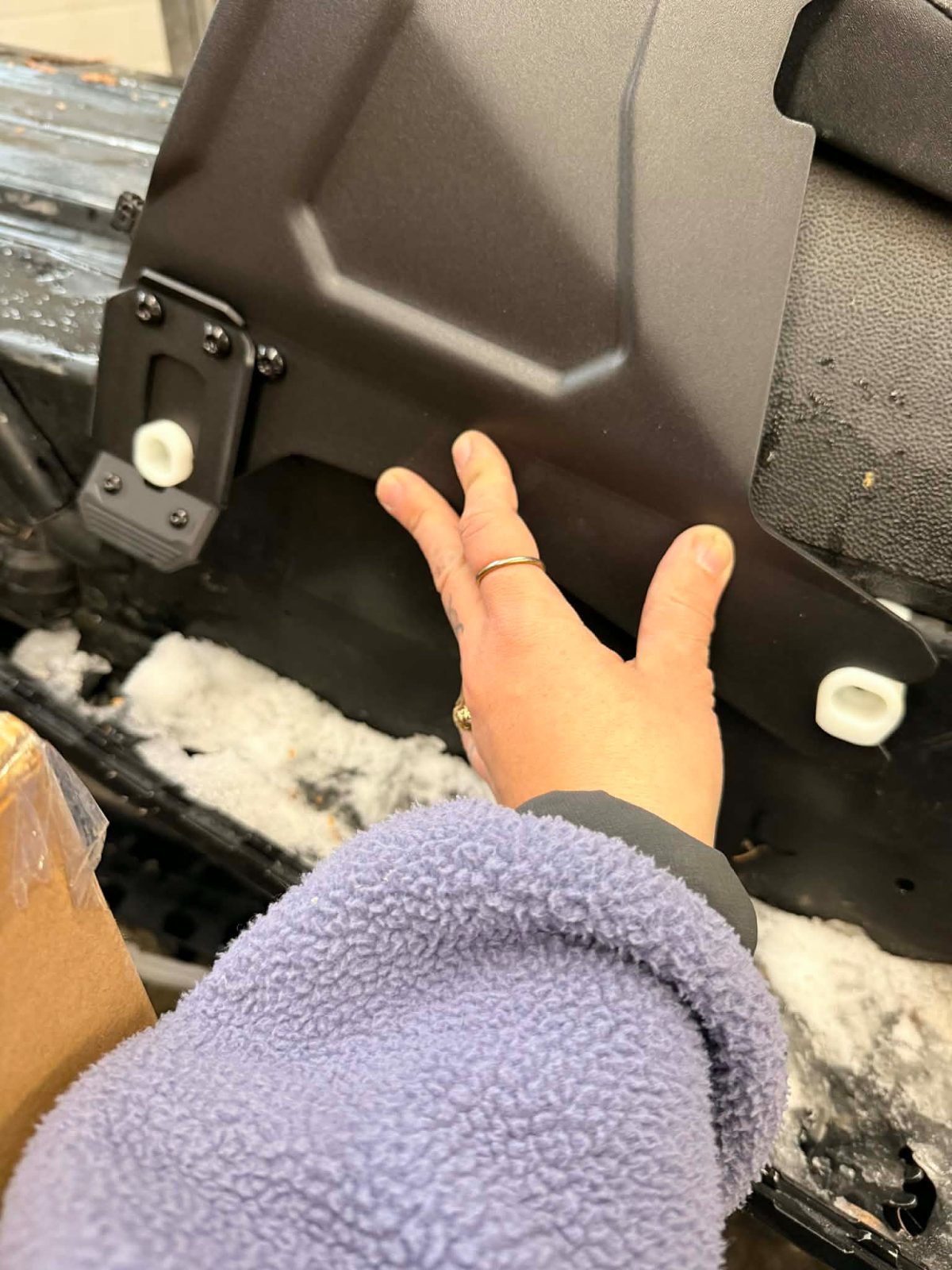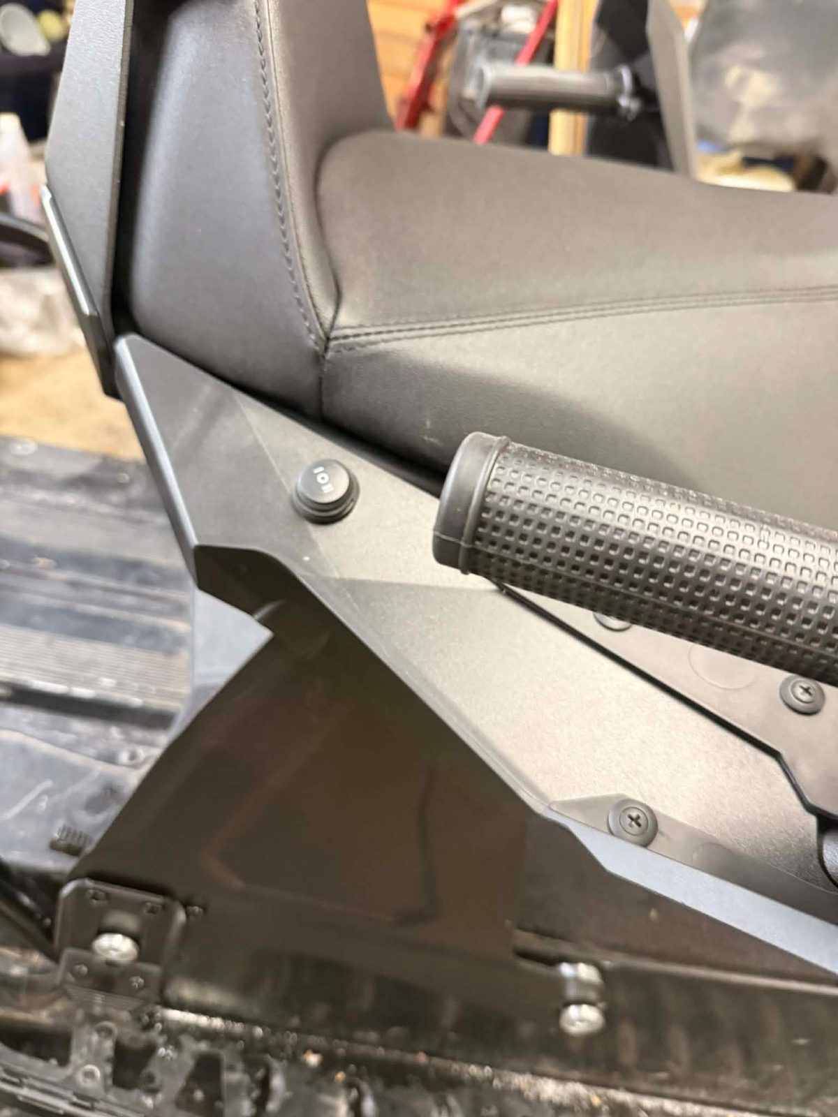 À la suite de mon installation, j’ai publié sur mes réseaux sociaux des vidéos de ma motoneige avec le siège dessus. Le lendemain, je reçois un appel de Kimpex qui souhaite me parler. Il se trouve que lors de ma commande, une erreur s’est glissée. Théoriquement, ce modèle de SeatJack n’est pas compatible avec mon modèle de motoneige. Cela est principalement à cause du kit de fixation qui est fait pour un modèle de motoneige plus récent avec un tunnel en angle, pas droit comme le mien.
