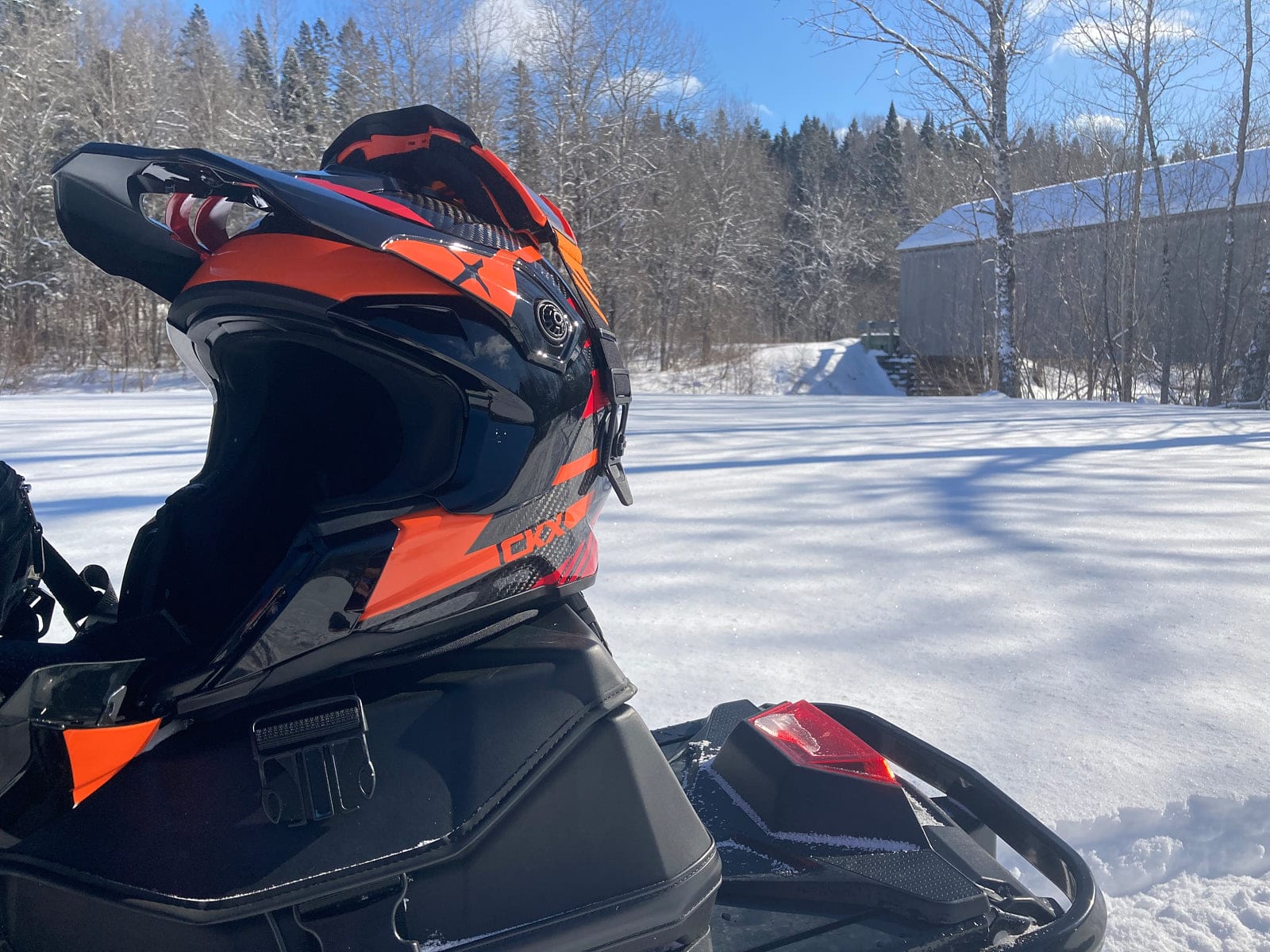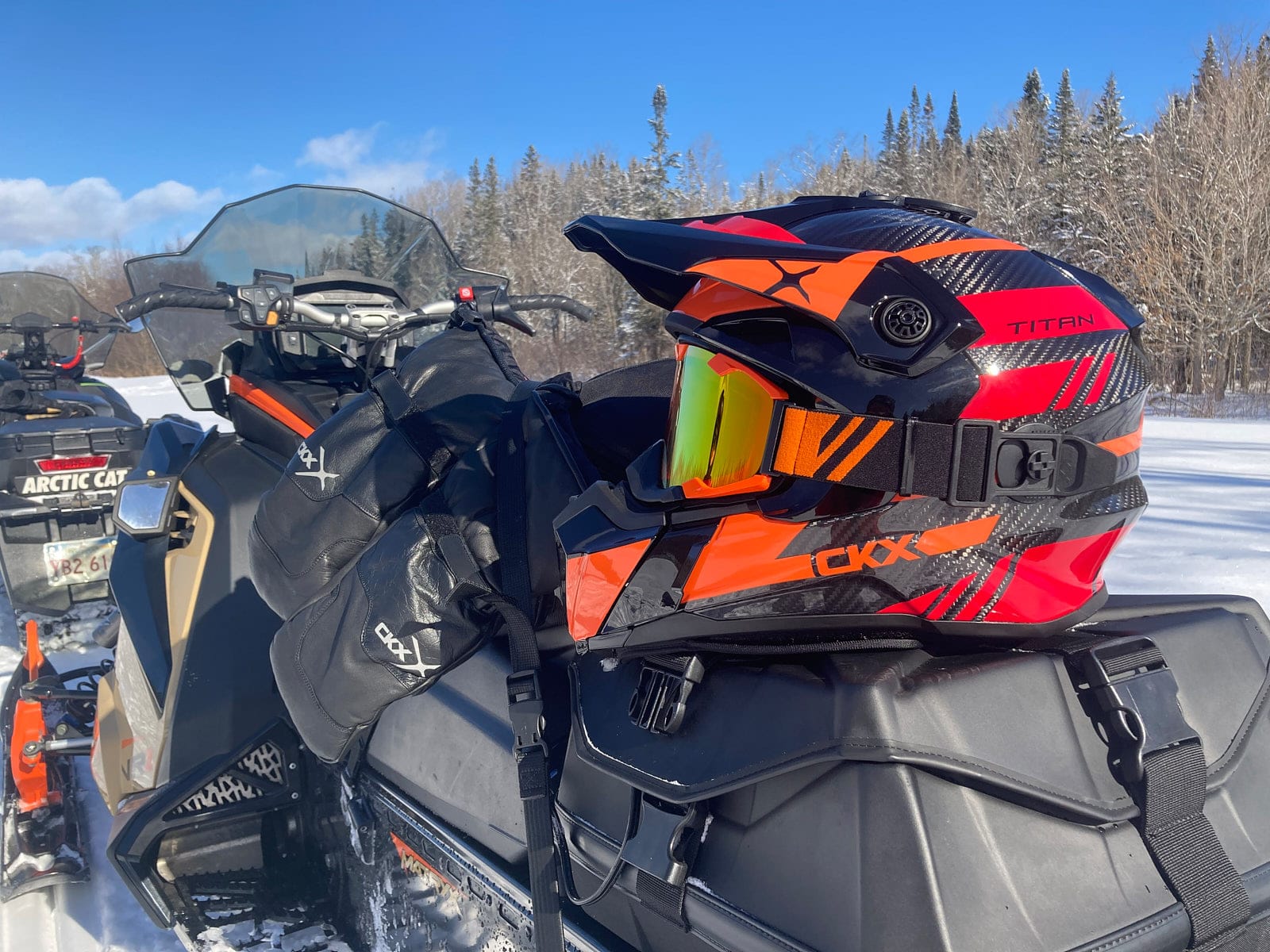 En 2025, j’ai décidé d’opter pour le casque CKX Titan Original Carbon avec la configuration Trail and Backcountry Trak. Il était également livré avec les lunettes CKX 210 de couleur ambre à double lentille.