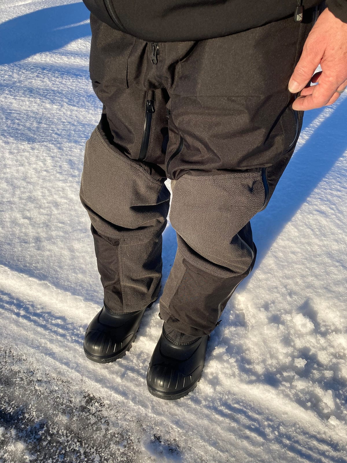 Certaines des caractéristiques que j’ai mentionnées dans mon article de premières impressions se sont révélées tout à fait exactes. Le Codura sur le bas des jambes et sur les genoux est un réel avantage. Même si ce n’est jamais notre intention, nous nous retrouvons inévitablement à genoux lors du chargement, du déchargement ou de l’attelage de nos remorques à motoneige. Ce tissu de renfort en Codura résiste beaucoup mieux à l’usure que le simple nylon.