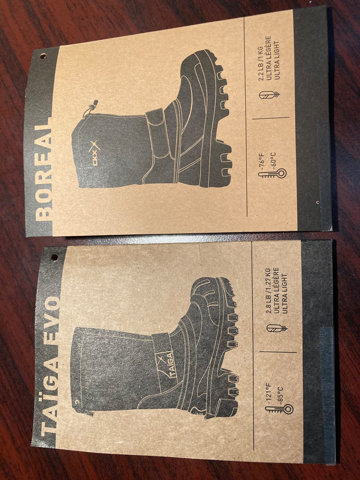 Il est important de noter que les bottes Taiga EVO que je mets à l’essai sont différentes des bottes Boreal EVO. Je le précise, car, même si les différences ne sont pas évidentes au premier coup d’œil, elles le deviennent lorsqu’on les compare côte à côte. La différence la plus évidente, du moins pour moi, est que les bottes Taiga EVO sont beaucoup plus chaudes. Les deux modèles offrent une doublure amovible, ce qui est essentiel pour commencer la journée sans humidité résiduelle des randonnées précédentes. Cependant, les bottes Boreal EVO sont isolées avec Thermoshield alors que les Taiga EVO disposent de 200 g d’isolant Primaloft. Même si les deux sont « ultralégères », les Taiga sont plus chaudes, avec une cote de -121 °F (-85 °C).